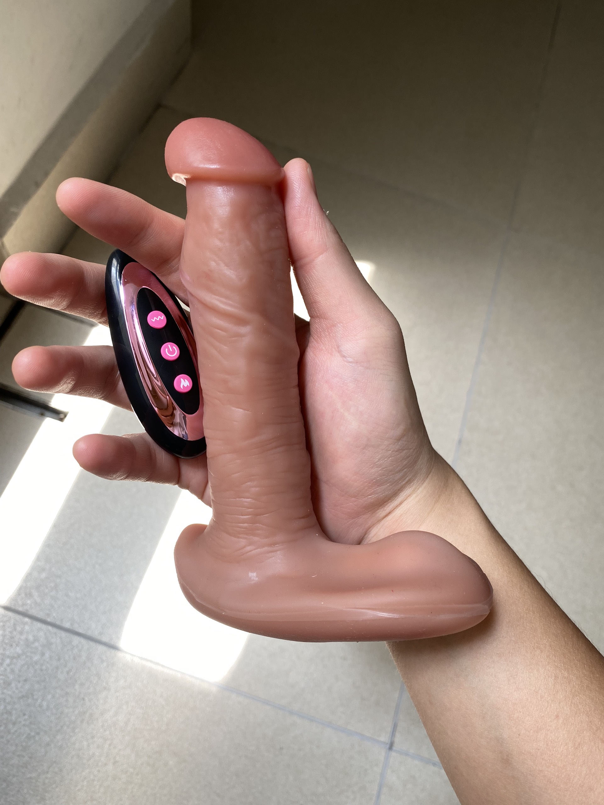 Bước 1. Bấm giữ khoảng 3 giây vào nút nguồn trên dương vật để khởi động sản phẩm. Tiếp theo bấm chọn chế độ rung thụt phù hợp rồi mới tiến hành sử dụng sản phẩm. Có thể bấm thay đổi ngay trên nút nguồn dương vật hoặc sử dụng điều khiển