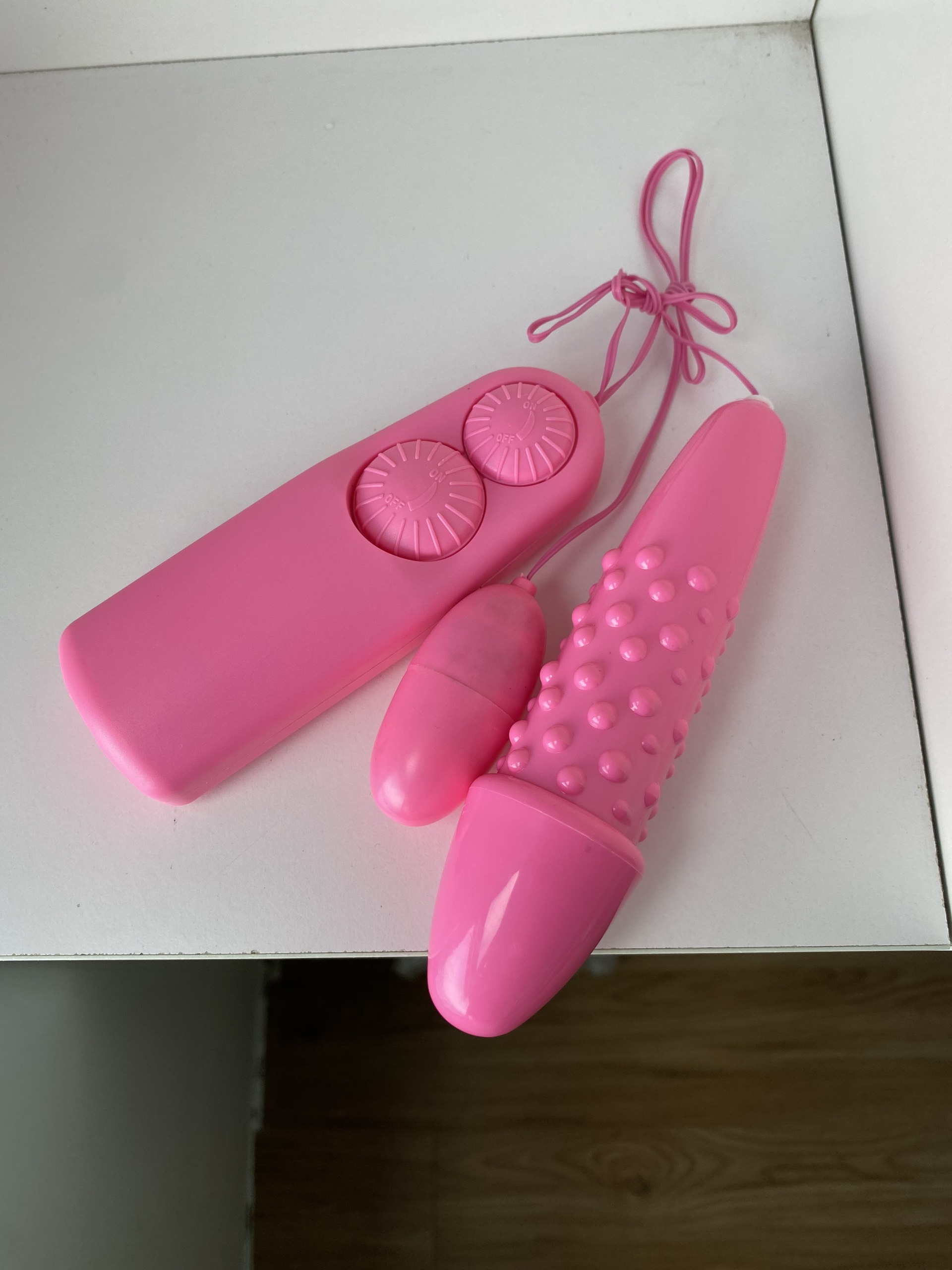 - Bộ sản phẩm gồm: 1 điều khiển kết nối với 2 trứng rung qua dây nối