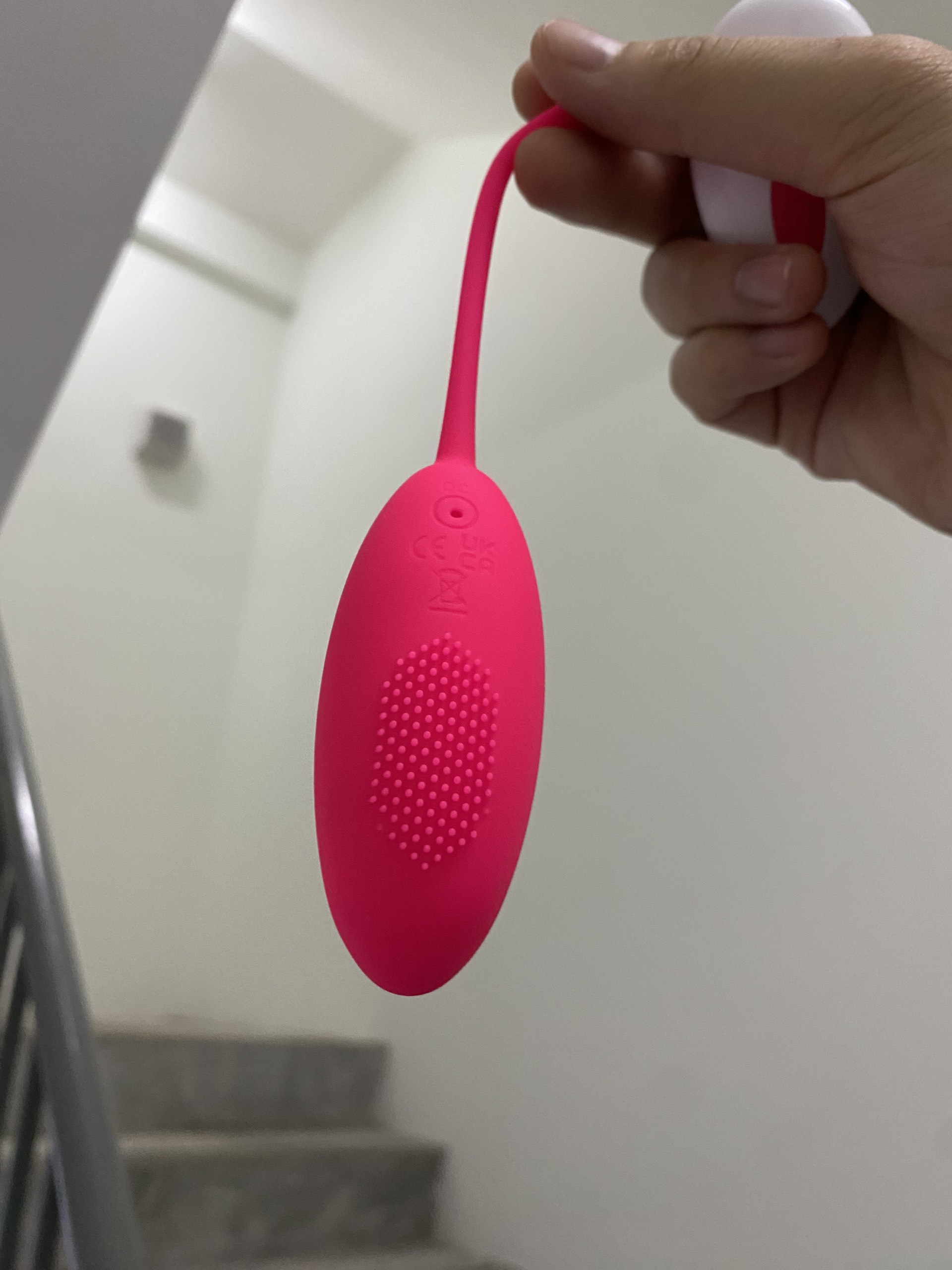 - Sạc đầy pin trứng rung trước khi sử dụng lần đầu tiên. Sạc vào lỗ nhỏ trên trứng rung có ký hiệu chữ DC